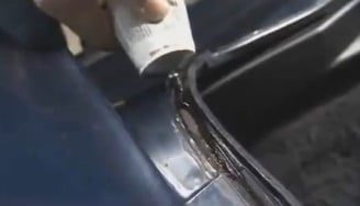 Once that’s done, pull the weatherstrip back off and lay a thin bead of the 3M Super Weatherstrip Adhesive in the channel all the way around the trunk opening. A thin bead- little goes a long way. Then put the rubber back in place pushing it into the channel, starting at the bottom center and working your way around the entire trunk.
