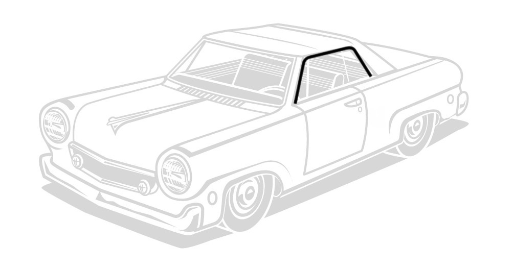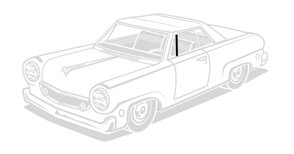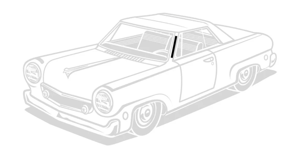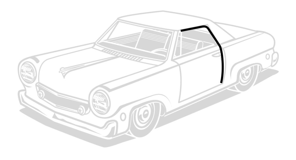 This part attaches to the body and seals between the A-pillar post and the front section of the door or vent window frame when the door is closed. It’s typically only found on convertible models and, depending on the vehicle and how the original parts were constructed, may be molded as a one-piece seal with the convertible header bow weatherstrip.