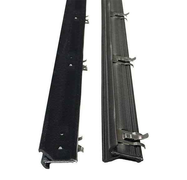 These parts mount on both sides of the opening at the top of the door panel where the window goes into. The beltline weatherstrips ‘sweep’ the window as it rolls up and down. They prevent window rattles while preventing water and debris from getting inside your door.