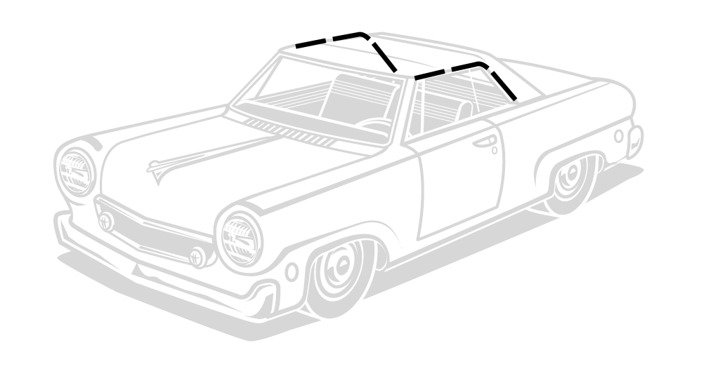 This weatherstrip, also referred to as front header bow or front bow weatherstrip, runs across the top of the windshield and seals between the convertible top and the windshield frame when the top is closed. It’s typically included in convertible roof rail weatherstrip kits, but is also sold individually for those who don’t need to replace all of the convertible seals.