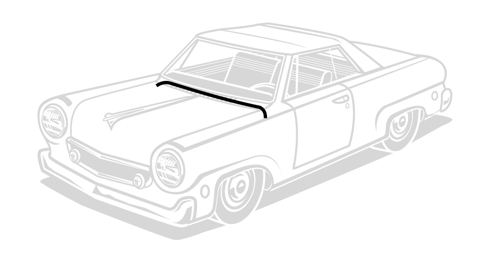 This weatherstrip, also known as Firewall to Hood or Cowl Lacing, seals between the top of the firewall and the back edge of the hood. It typically runs the width of the car and seals snugly to prevent fumes from entering the cab of the vehicle. Depending on the vehicle, the application style can vary from pins or clips to push-on or glue-on.