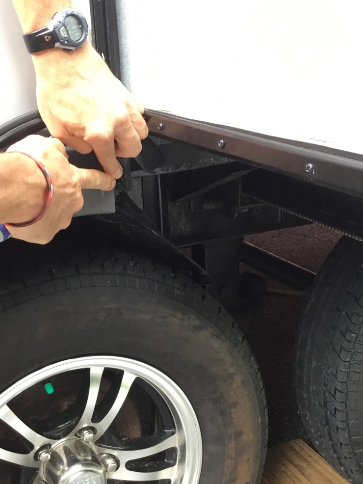 Como técnico de RV, Mike ha visto todas estas situaciones, incluyendo sellos que se despegan de la carrocería del RV, espacialmente los que han sido instalados con pegamento. El pegamento tiende a suavizarse ante los embates del sol, provocando que la parte superior del cuarto corredizo se seque y el sello se despegue.