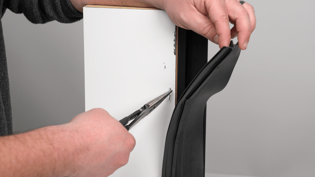 4. Clean the Area Before Application: If staples or clips are securing the seal, remove them using pliers. Wipe down the area thoroughly with a cleaning cloth and adhesive remover to remove dirt, debris, and old sealant.