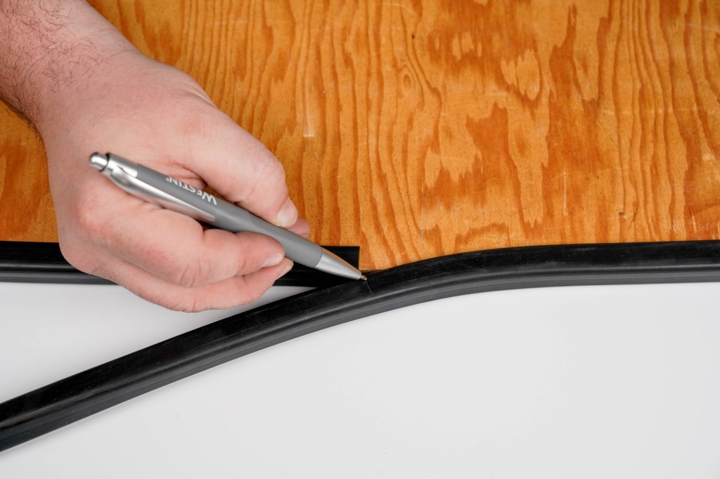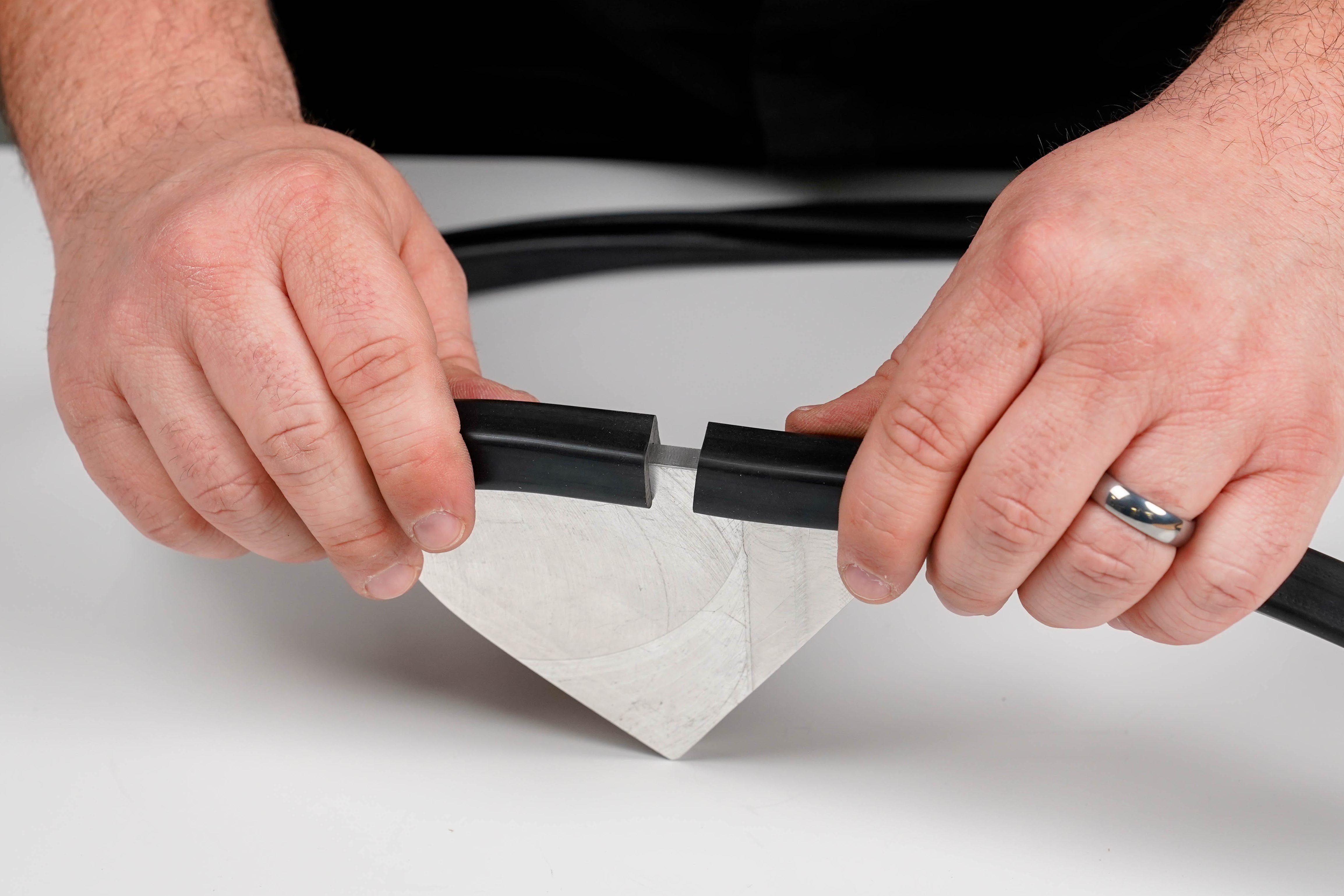 To determine what length you need, install the rubber around the entirety of the glass and mark on the rubber where you’ll need to make your cut. You want the gasket to fit tightly without having to stretch the rubber to make the ends meet.